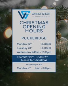 Our email inbox is monitored over the festivities, so please drop us a message at info@varneygreenphysio.co.uk Contact Us